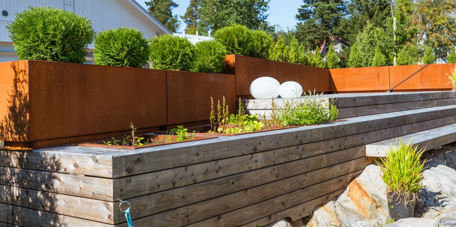 Tarjoamme viher- ja maisemointisuunnitelmien toteutukseen eri muotoisia ja kokoisia teräselementtiratkaisuja asiakkaan toiveiden mukaan toteutettuna. Meihin kannattaa olla yhteydessä jo suunnitteluvaiheessa, jolloin erilaisten visioiden toteutusmahdollisuudet on sujuvin kartoittaa. Sesonki istutusaltaille on luonnollisesti alkukesä.